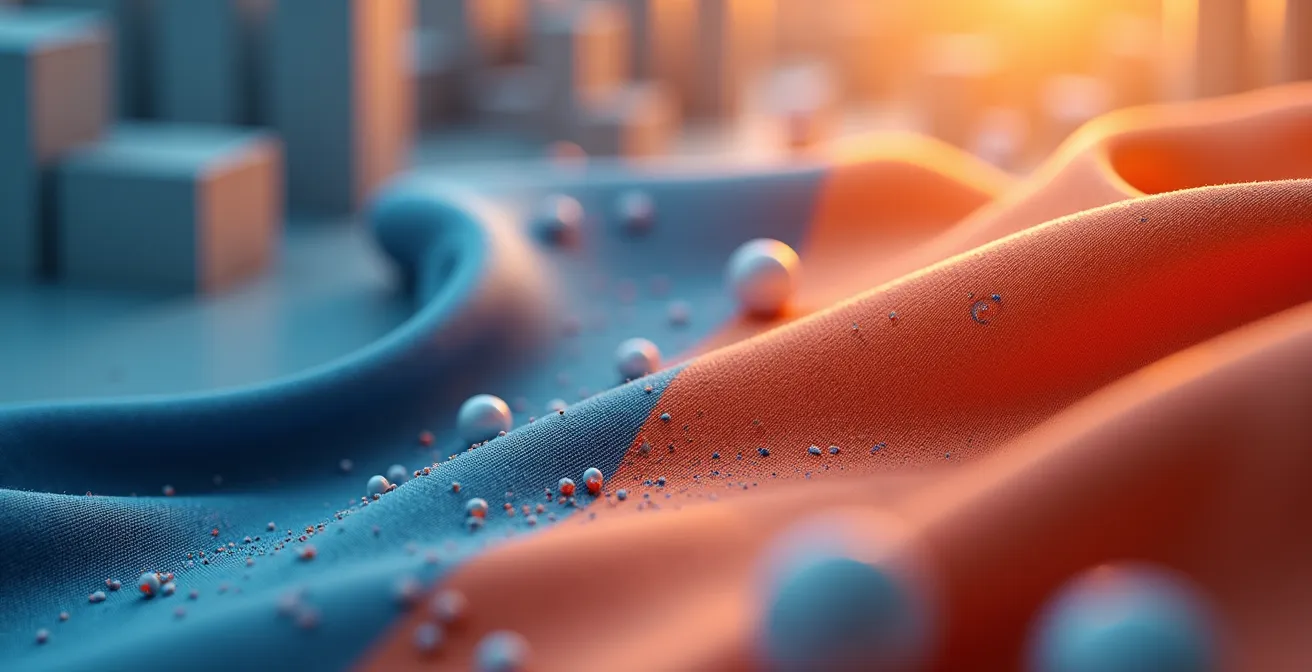 Le principal défi du sportif en hiver n’est pas seulement d’avoir chaud, mais de gérer les variations de température corporelle. On a froid au départ, puis on surchauffe pendant l’effort, et enfin on se refroidit brutalement à l’arrêt. C’est ici qu’interviennent les textiles à changement de phase (PCM), une solution bien plus subtile qu’une simple couche isolante. Leur secret réside dans des microcapsules intégrées aux fibres, capables d’absorber, de stocker et de restituer la chaleur.